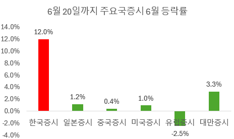 [ 6월 20일까지 주요국 증시 6월 등락률 ]