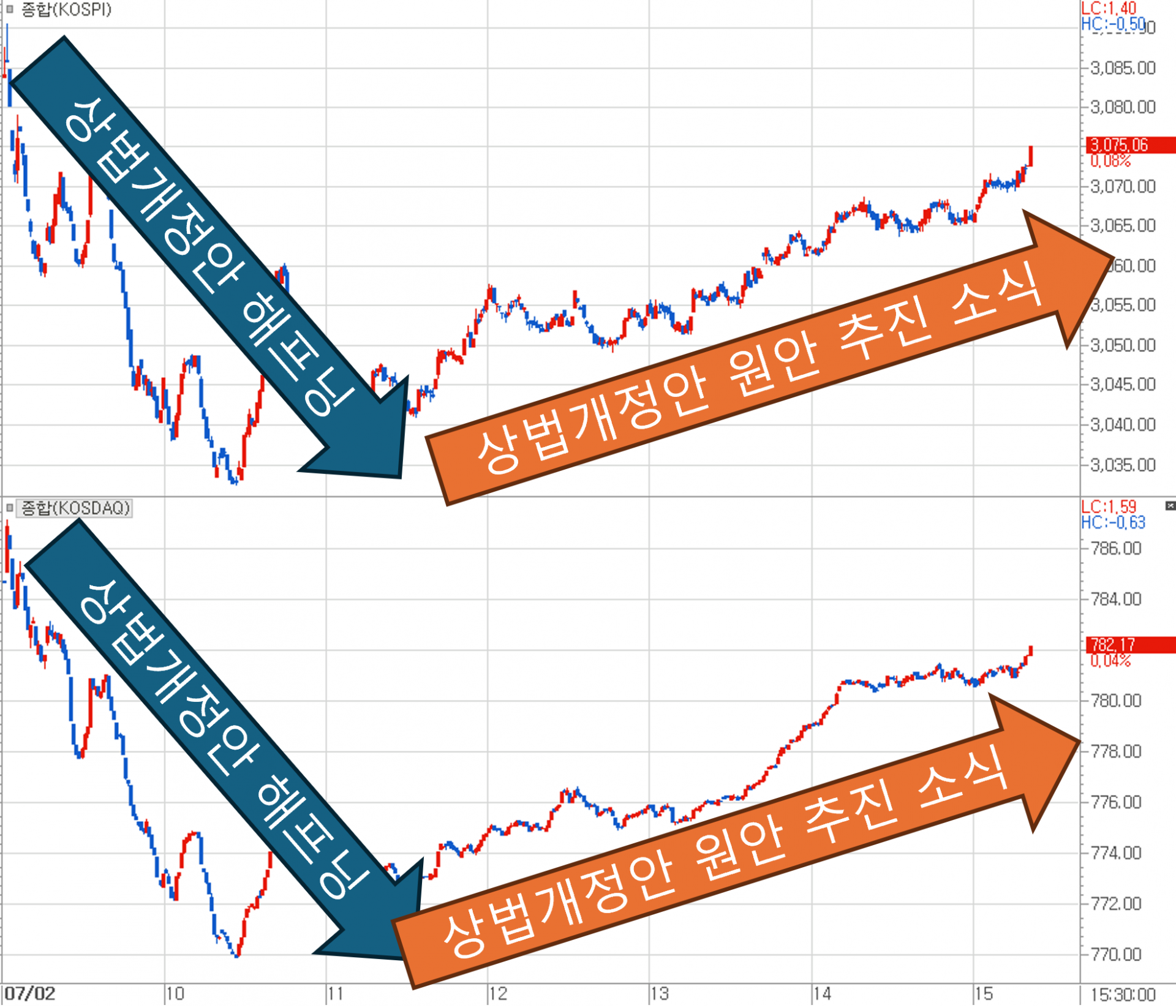 ■ 이른 아침 뉴스가 뒤집은 증시 : “3%룰을 빼고 상법 개정안 처리한다고?”