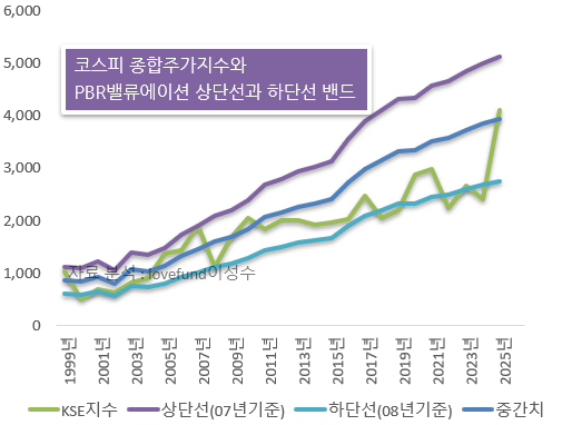 [ 코스피 PBR 밴드 추이. 1999년 말~2025년 최근 ]